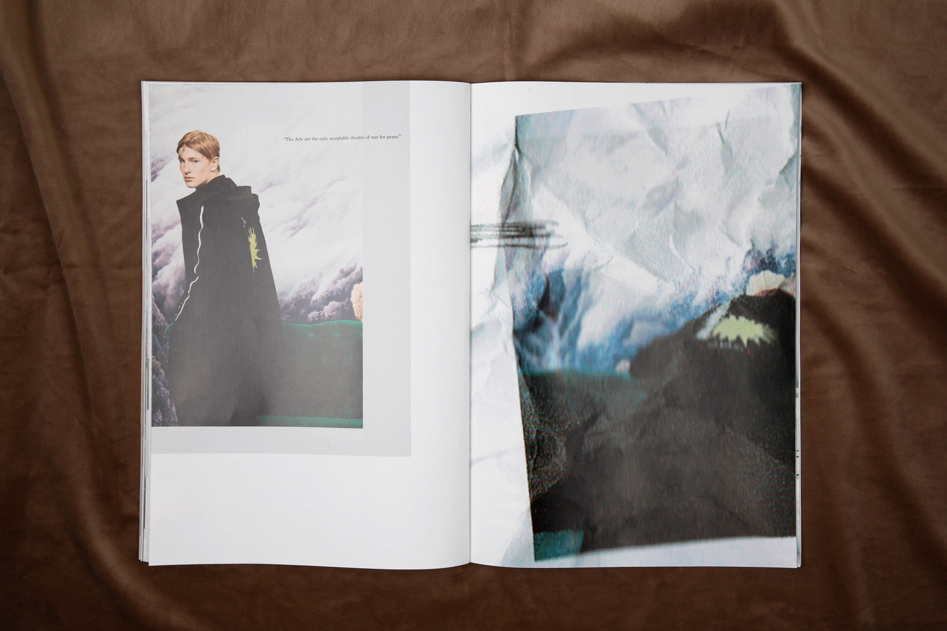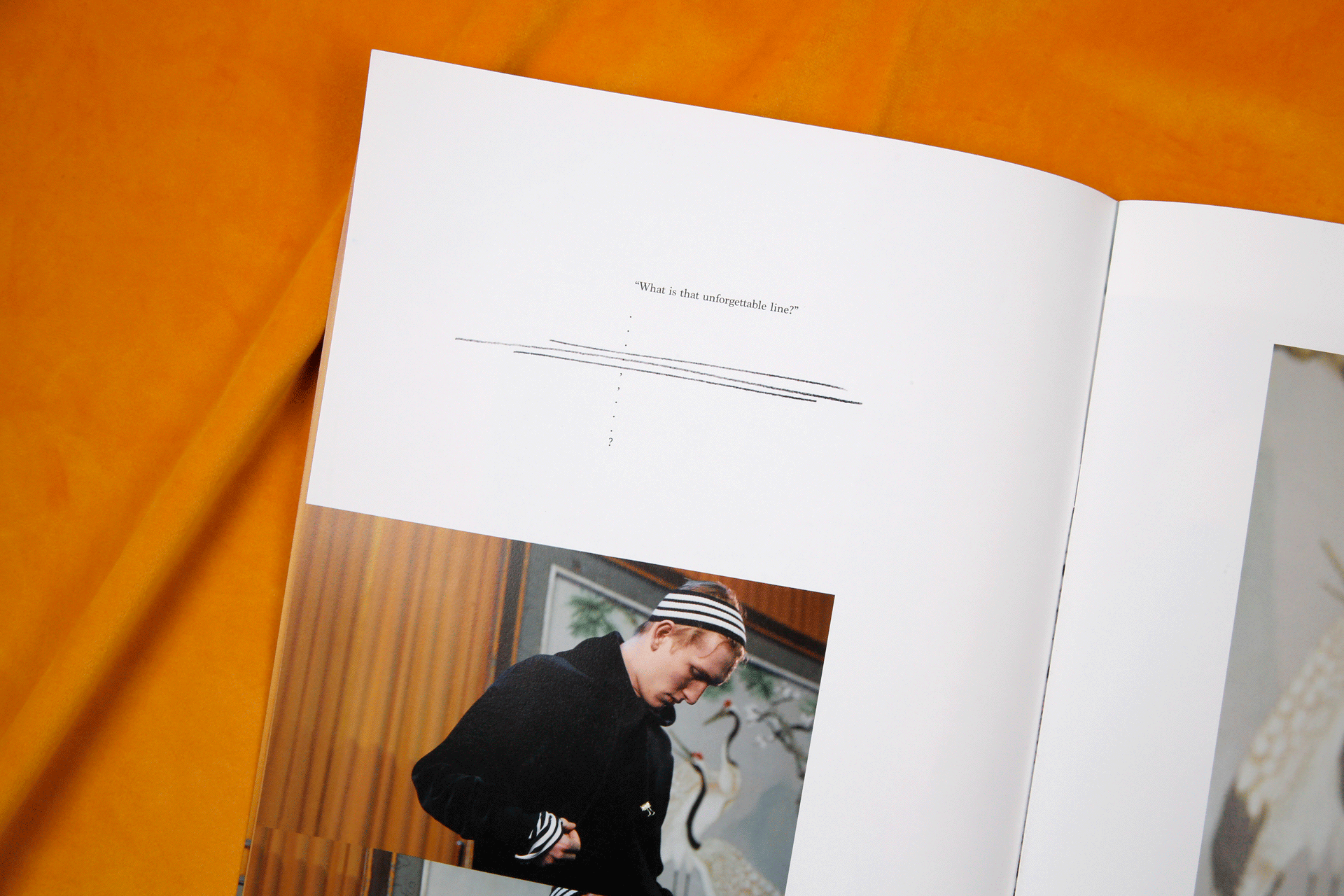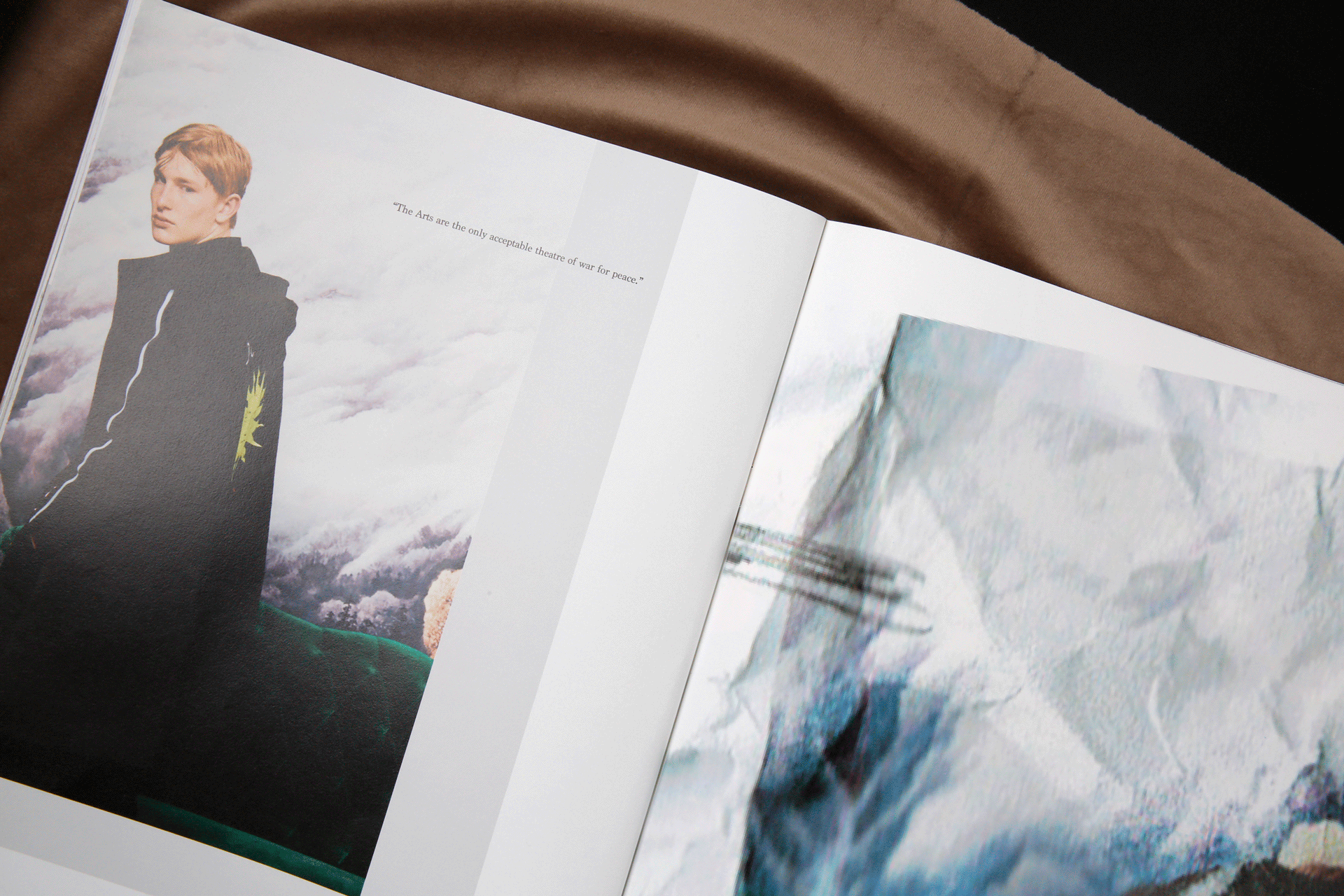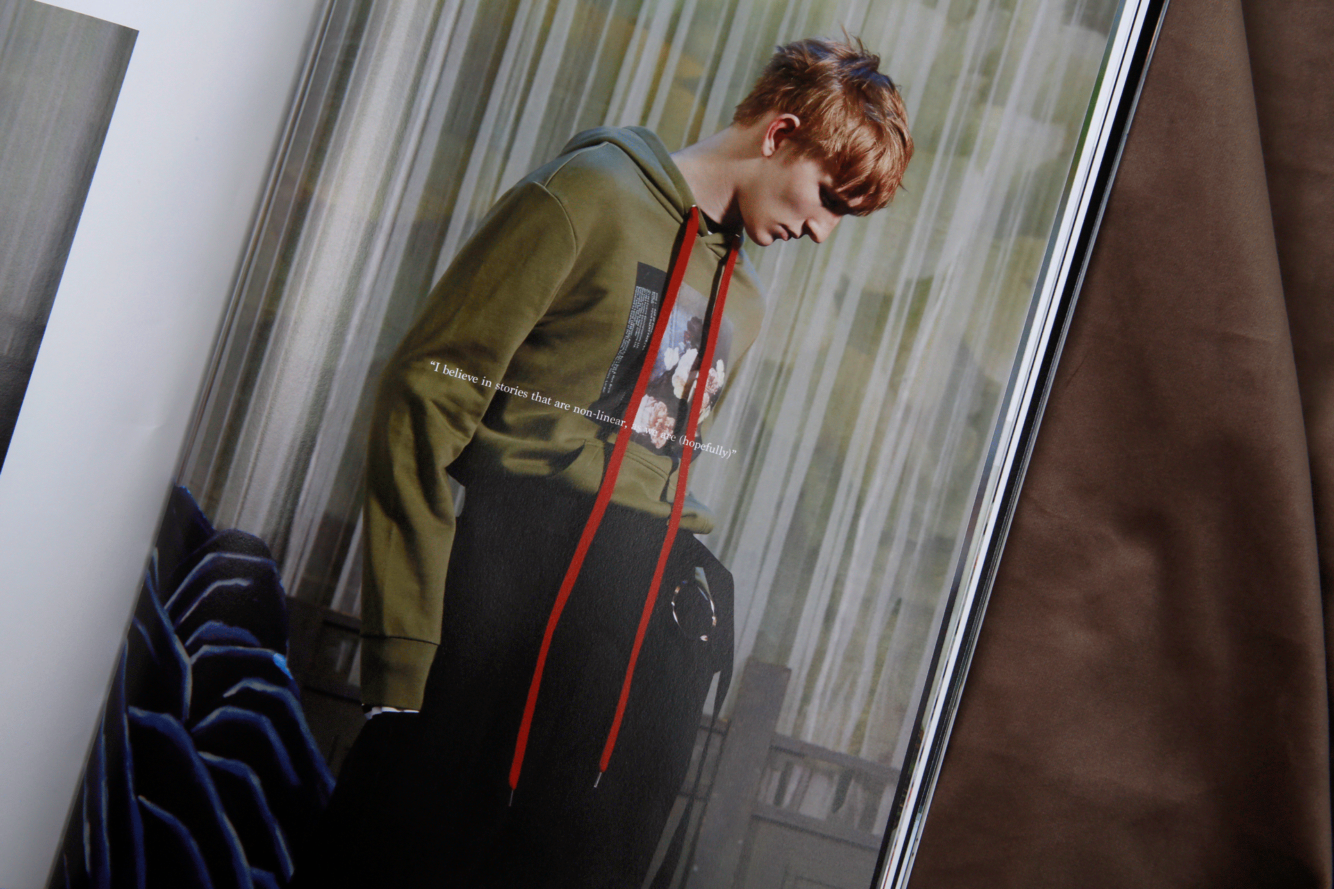 以下为太平鸟委托设计2017秋冬斯文系列的服装型录。这一季的主题围绕着剧场展开,本身的照片感觉有很强烈的油画质感。为了让众多的图片可以统一在一起,呈现出统一的视觉感受,我巧妙地在一些画面里,加入了以剧场为主题的英文短句,短句控制在寥寥几个字之内,反复去读,却又有双层的含义可以回味。画面之间穿插了一些随意的铅笔笔记和扫描好的褶皱草稿纸,呼应剧场的戏剧感和冲突感。最后用丝绒的布面为背景进行拍摄,突出这本册子安静内敛的质感。