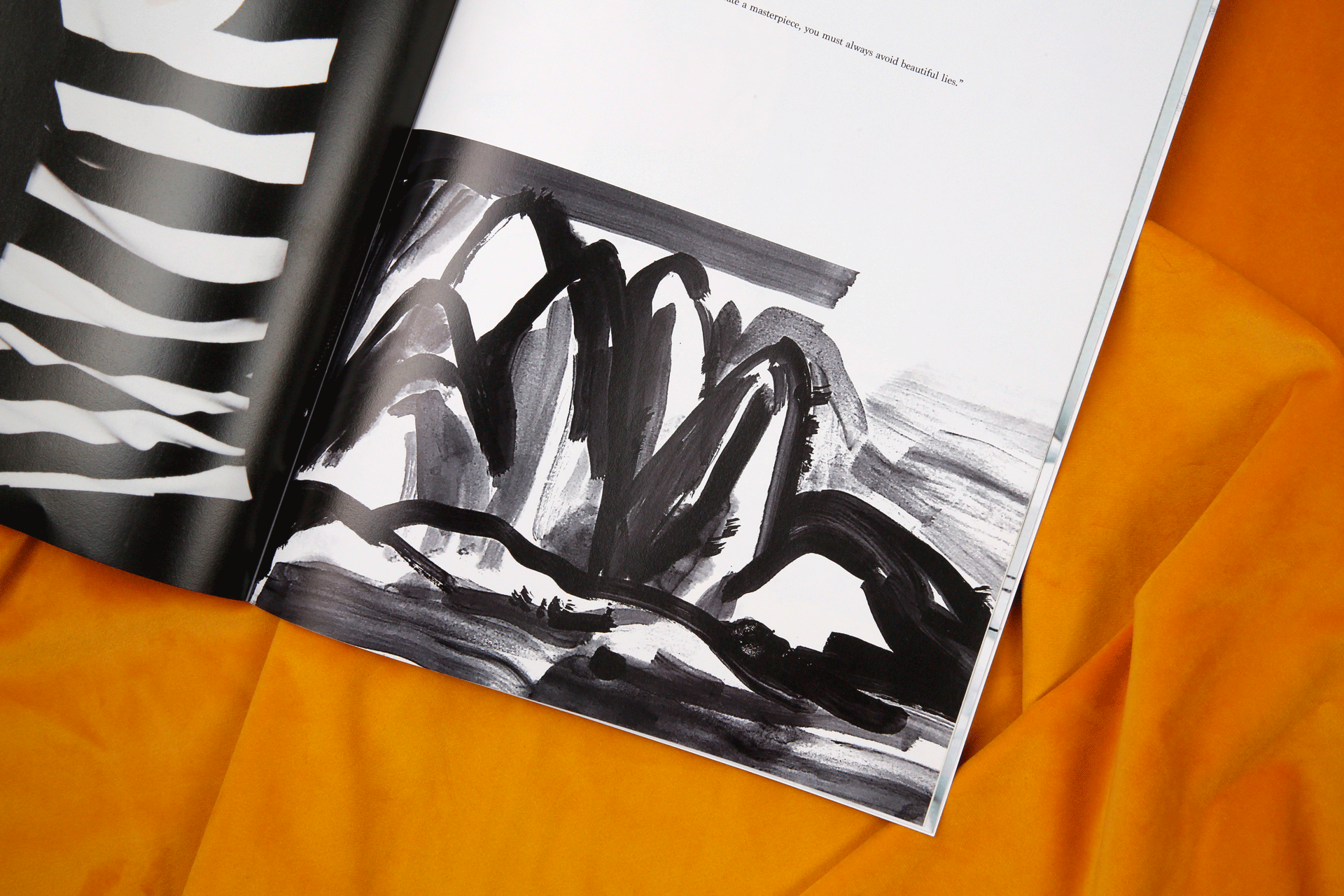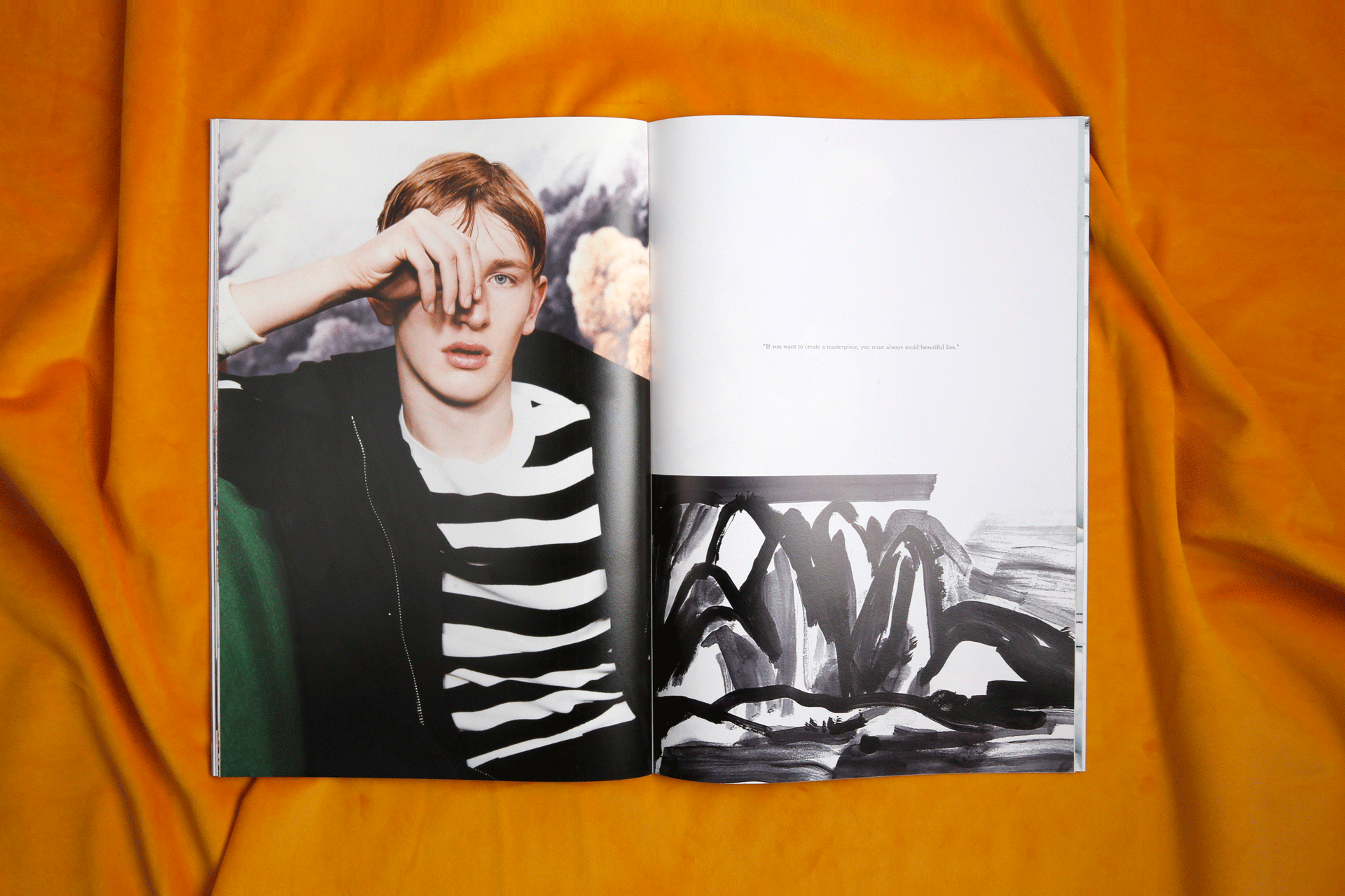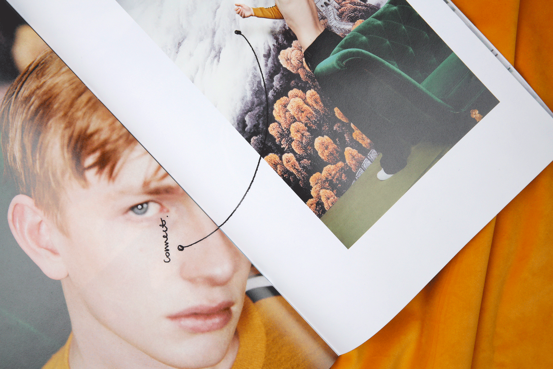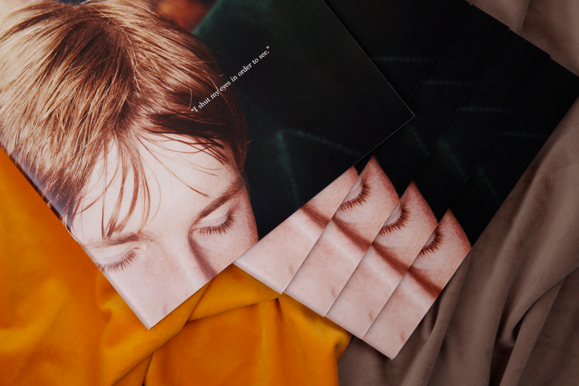 以下为太平鸟委托设计2017秋冬斯文系列的服装型录。这一季的主题围绕着剧场展开,本身的照片感觉有很强烈的油画质感。为了让众多的图片可以统一在一起,呈现出统一的视觉感受,我巧妙地在一些画面里,加入了以剧场为主题的英文短句,短句控制在寥寥几个字之内,反复去读,却又有双层的含义可以回味。画面之间穿插了一些随意的铅笔笔记和扫描好的褶皱草稿纸,呼应剧场的戏剧感和冲突感。最后用丝绒的布面为背景进行拍摄,突出这本册子安静内敛的质感。