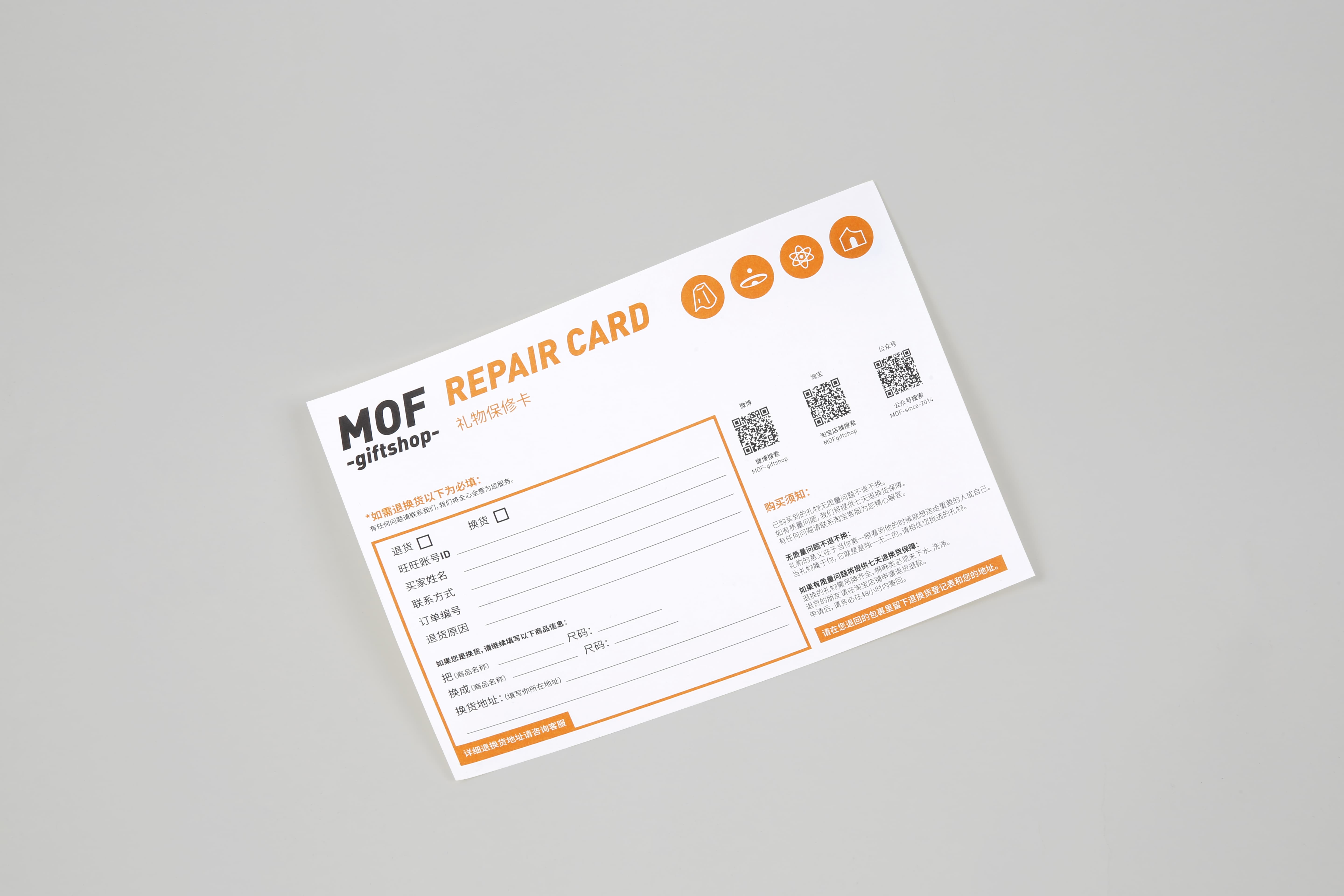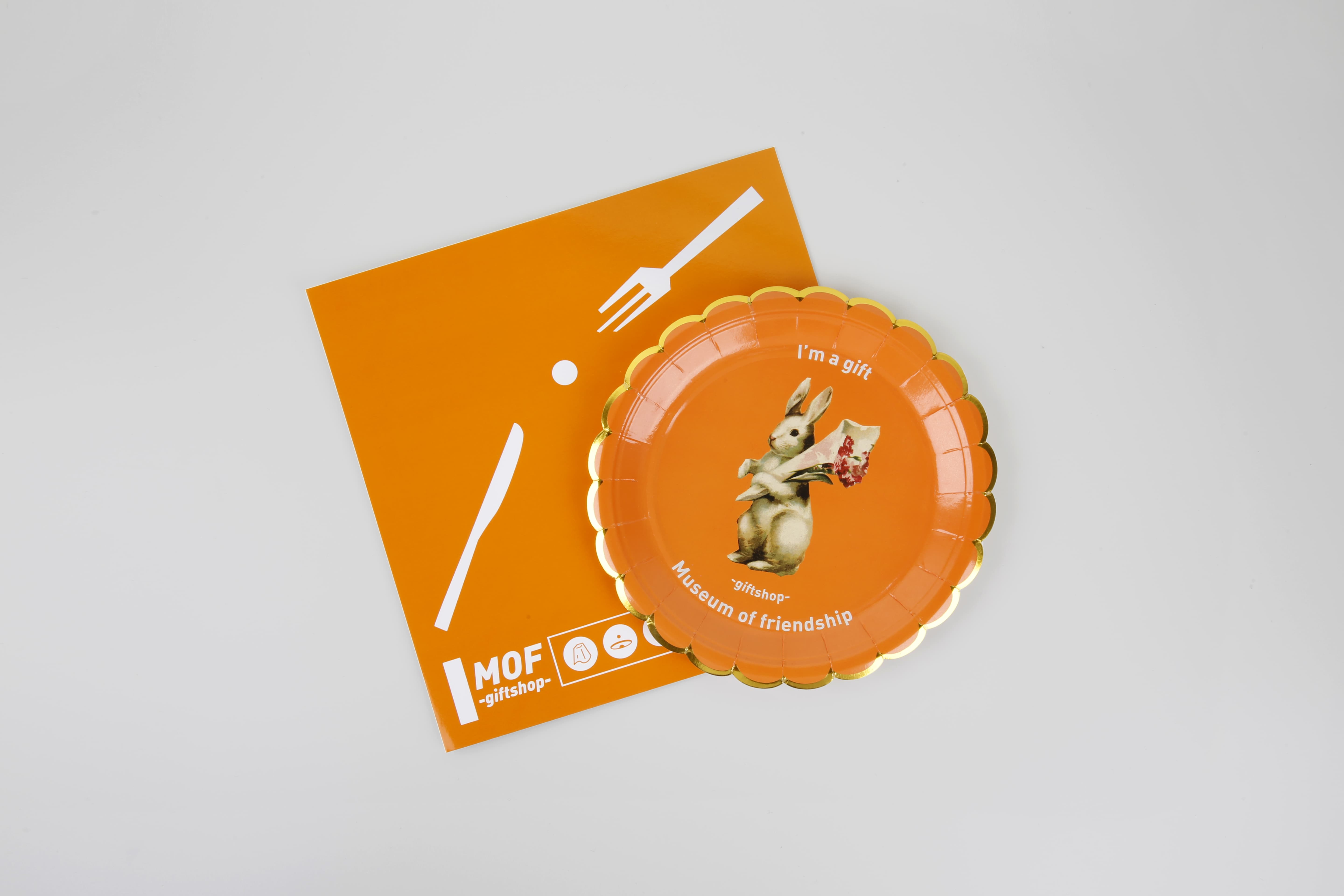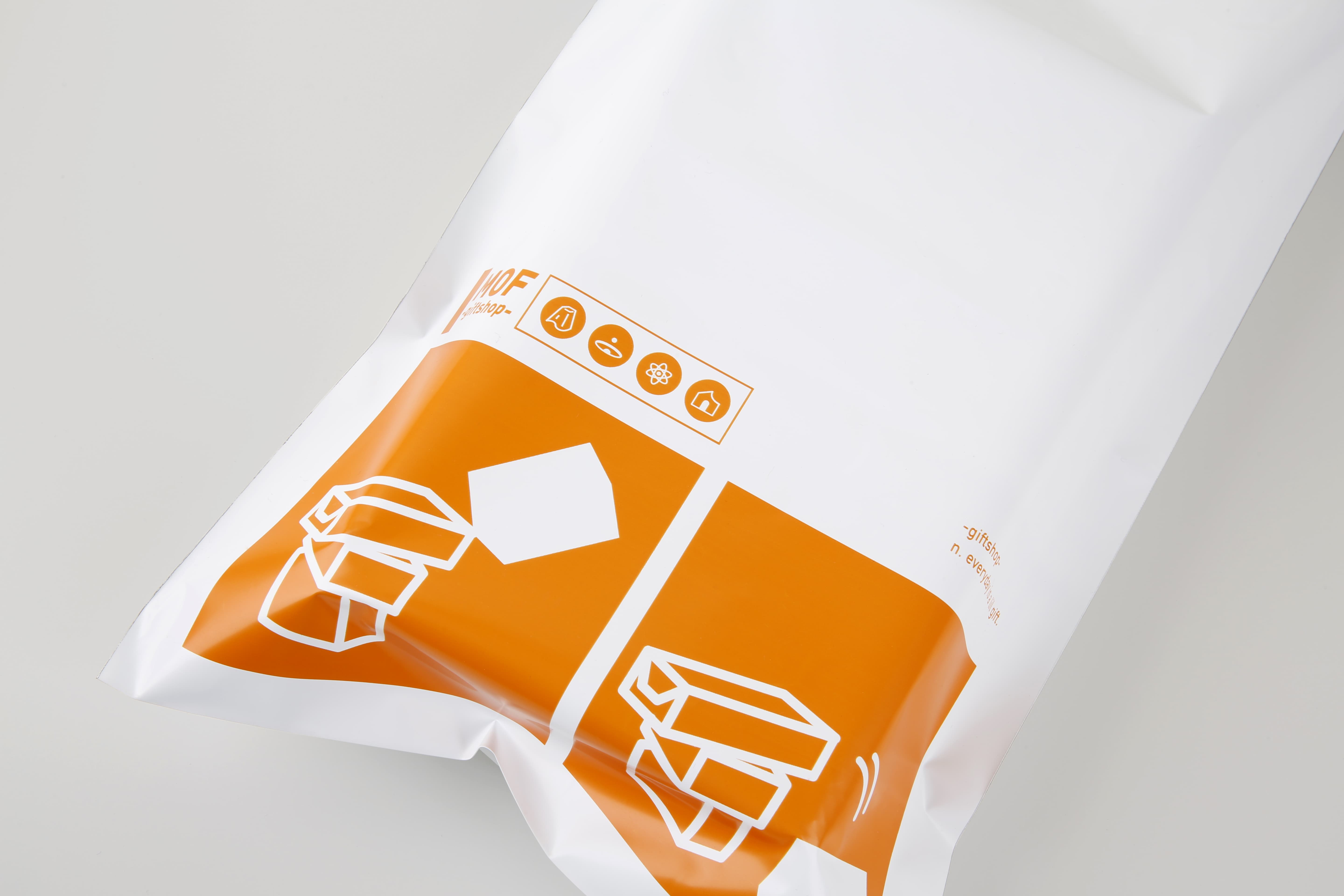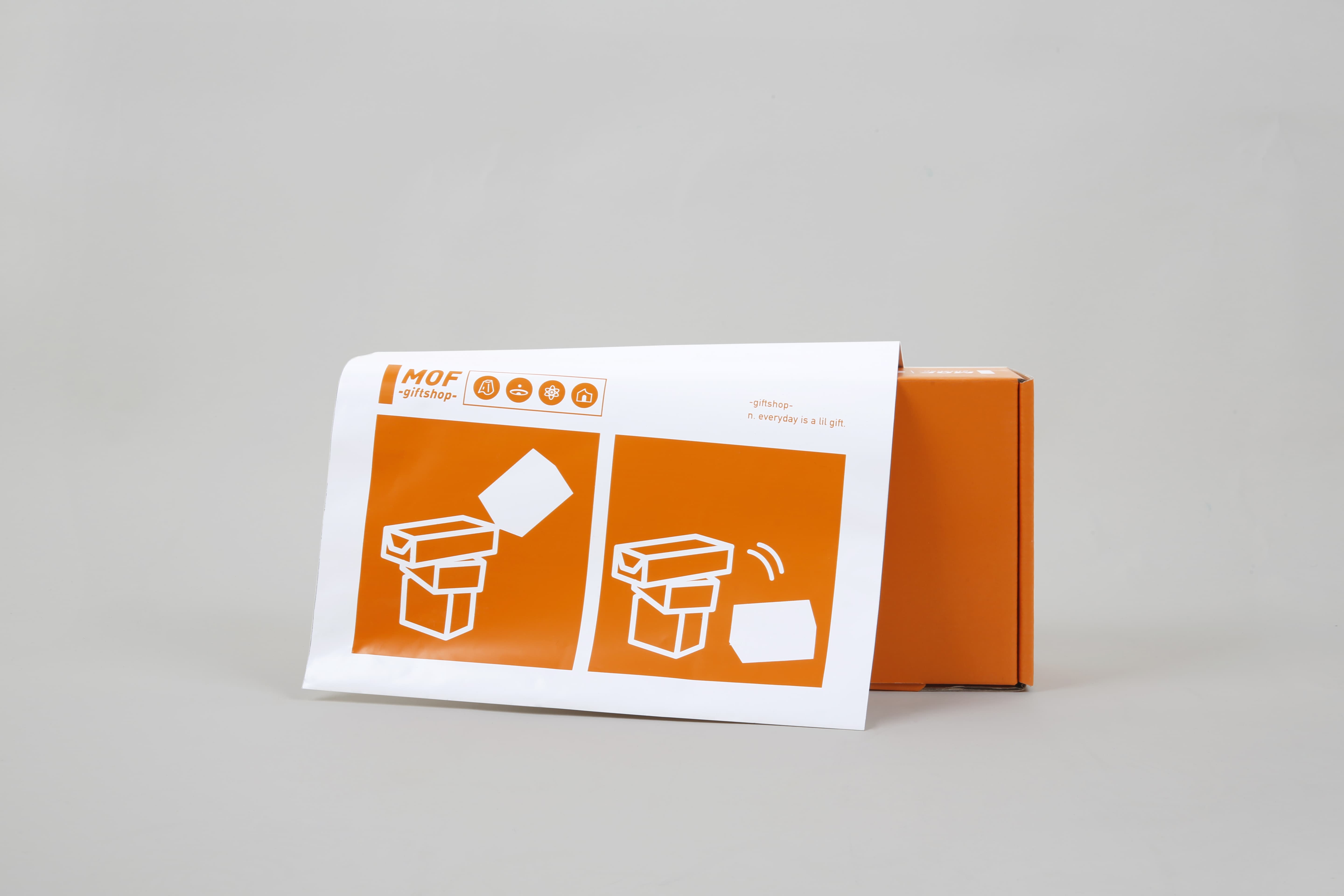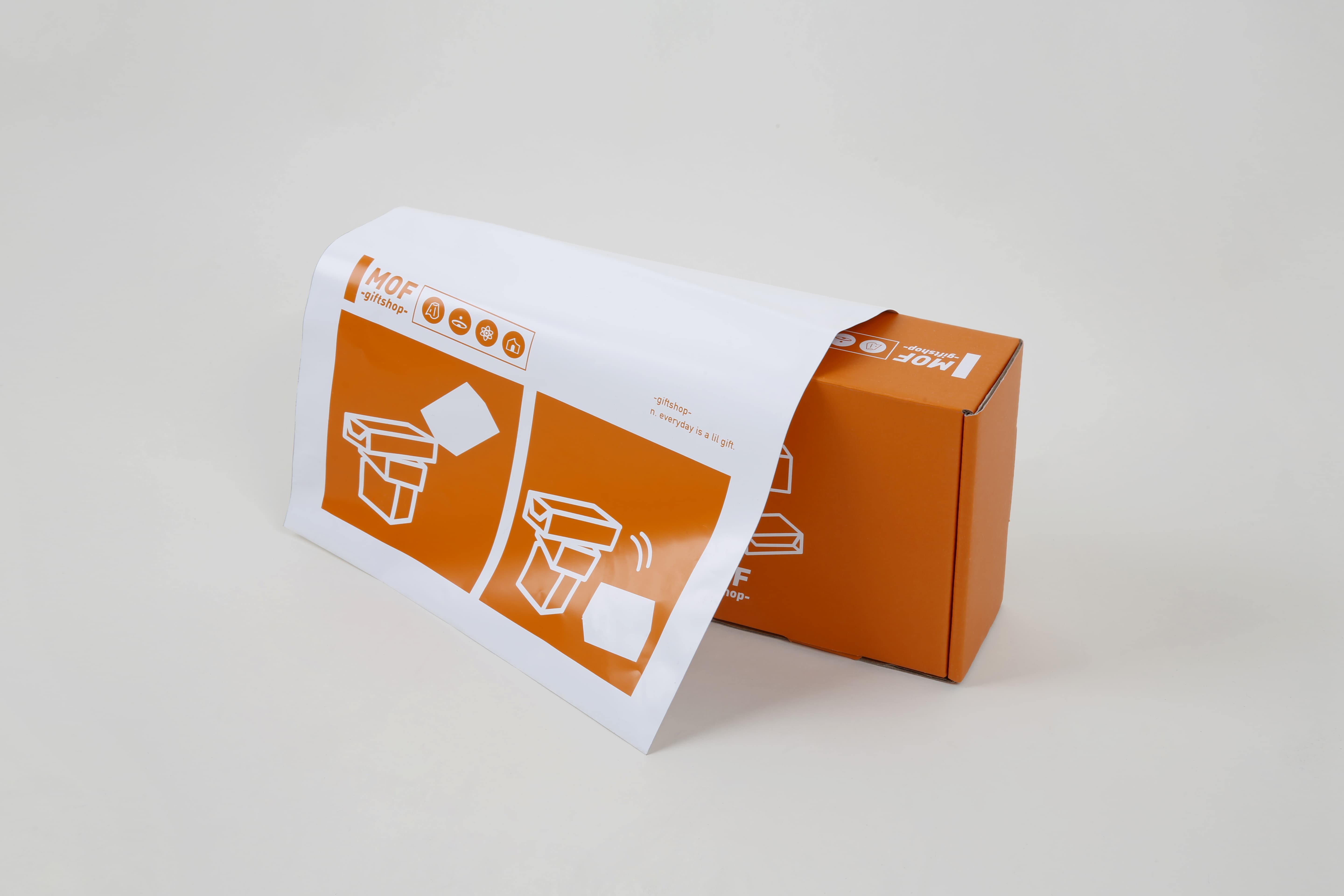 MOF-GIFT SHOP是服装设计师王天墨旗下Museum of friendship的副线品牌。以不同的生活物件,礼品饰品等有趣的产品为媒介,为年轻的女性带去幽默和概念化的购物体验。我们从品牌的标识到快递盒,从贴纸到包装纸,从透明袋到吊牌,从每一波的宣传海报,到顾客的商品回馈单,完整实现了一次别开生面的橘色礼物商店。